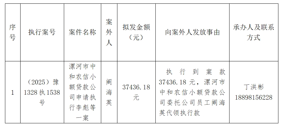 特别提示:公示期满3个自然日后,如无当事人提出异议,则该案款将向案外人发放,监督电话:0377-68955818。