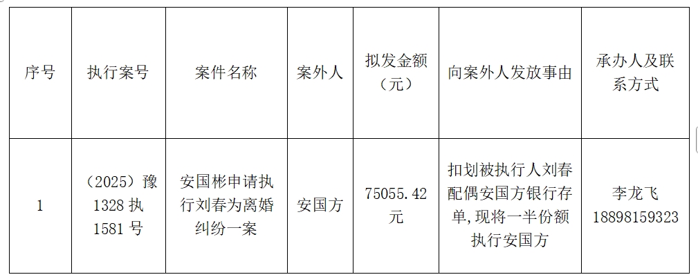 特别提示:公示期满3个自然日后,如无当事人提出异议,则该案款将向案外人发放,监督电话:0377-68955818。