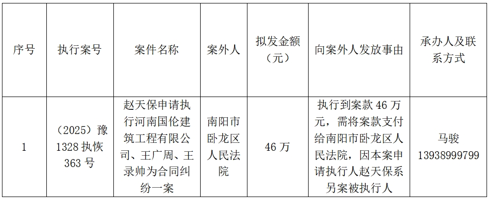 特别提示:公示期满3个自然日后,如无当事人提出异议,则该案款将向案外人发放,监督电话:0377-68955818。