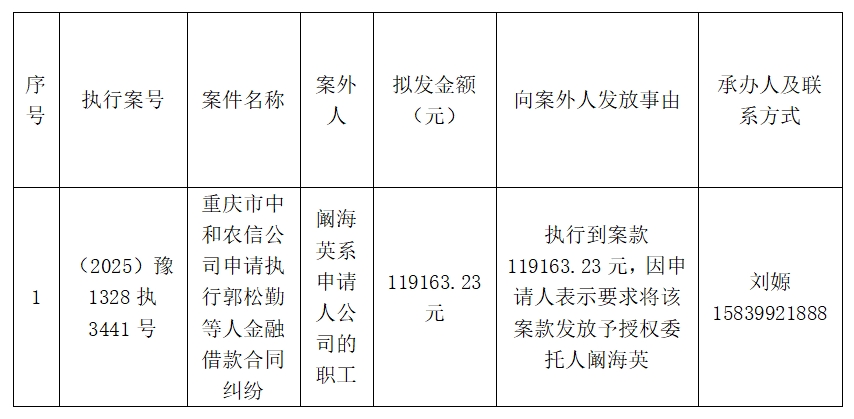 特别提示:公示期满3个自然日后,如无当事人提出异议,则该案款将向案外人发放,监督电话:0377-68955818。